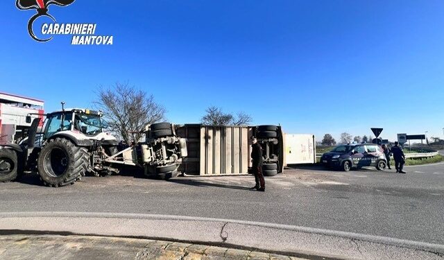 CASTELLUCCHIO – Ieri mattina in via Roma, intorno alle 11, all’altezza della rotonda lungo la statale 10, si è ribalatato un trattore agricolo che stava trasportando degli animali (maiali macroni).