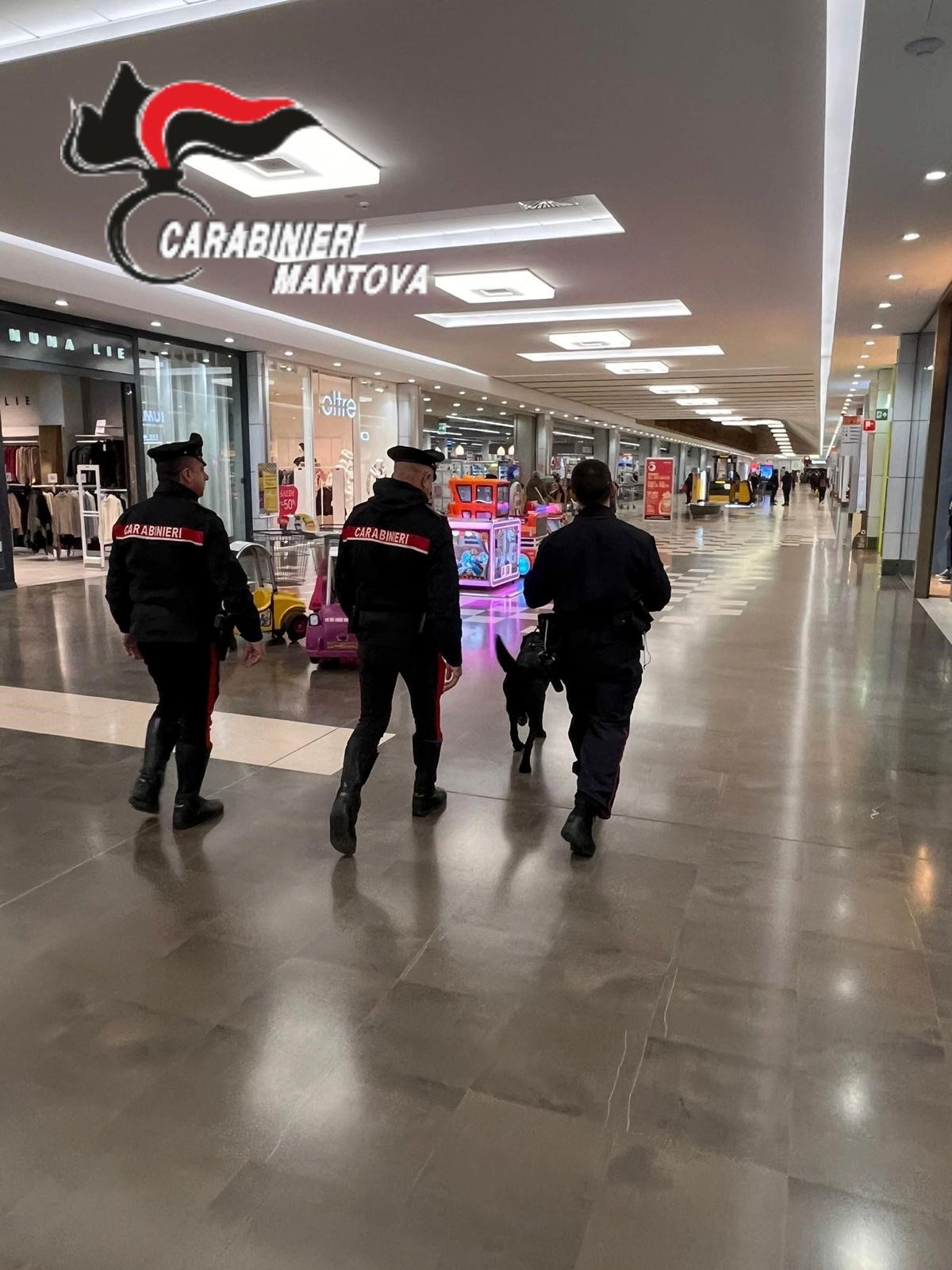 Il servizio in questione è stato eseguito con particolare attenzione nei pressi degli edifici scolastici, nei centri commerciali e nei parchi pubblici, con particolare attenzione ai giardini Nuvolari ed all’area limitrofa del supermercato Esselunga e nell’area in cui sono operative le giostre (Favorita). Nel dispositivo ha preso parte pure il cane “Perla”, uno splendido esemplare di pastore tedesco inquadrato nel Nucleo Cinofili Carabinieri di Orio al Serio (BG).