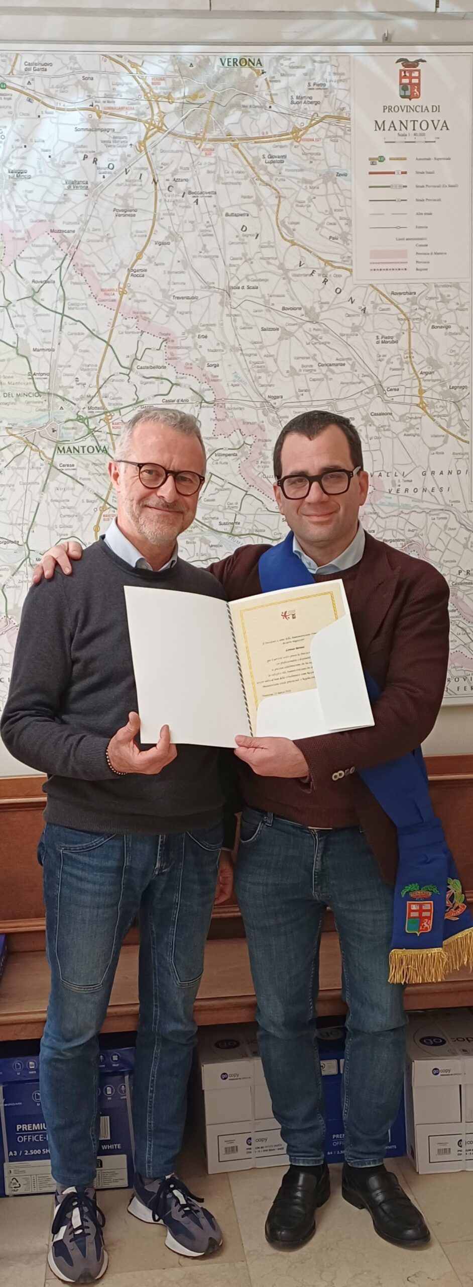 Il presidente dell’ente Carlo Bottani nel salutarlo prima della pensione ha voluto consegnargli una pergamena di ringraziamento “per i tanti anni di servizio svolti presso la Provincia di Mantova con professionalità e disponibilità, per la preziosa collaborazione che ha saputo dare ai colleghi e alle Amministrazioni che si sono succedute sempre volta al bene della cittadinanza”.