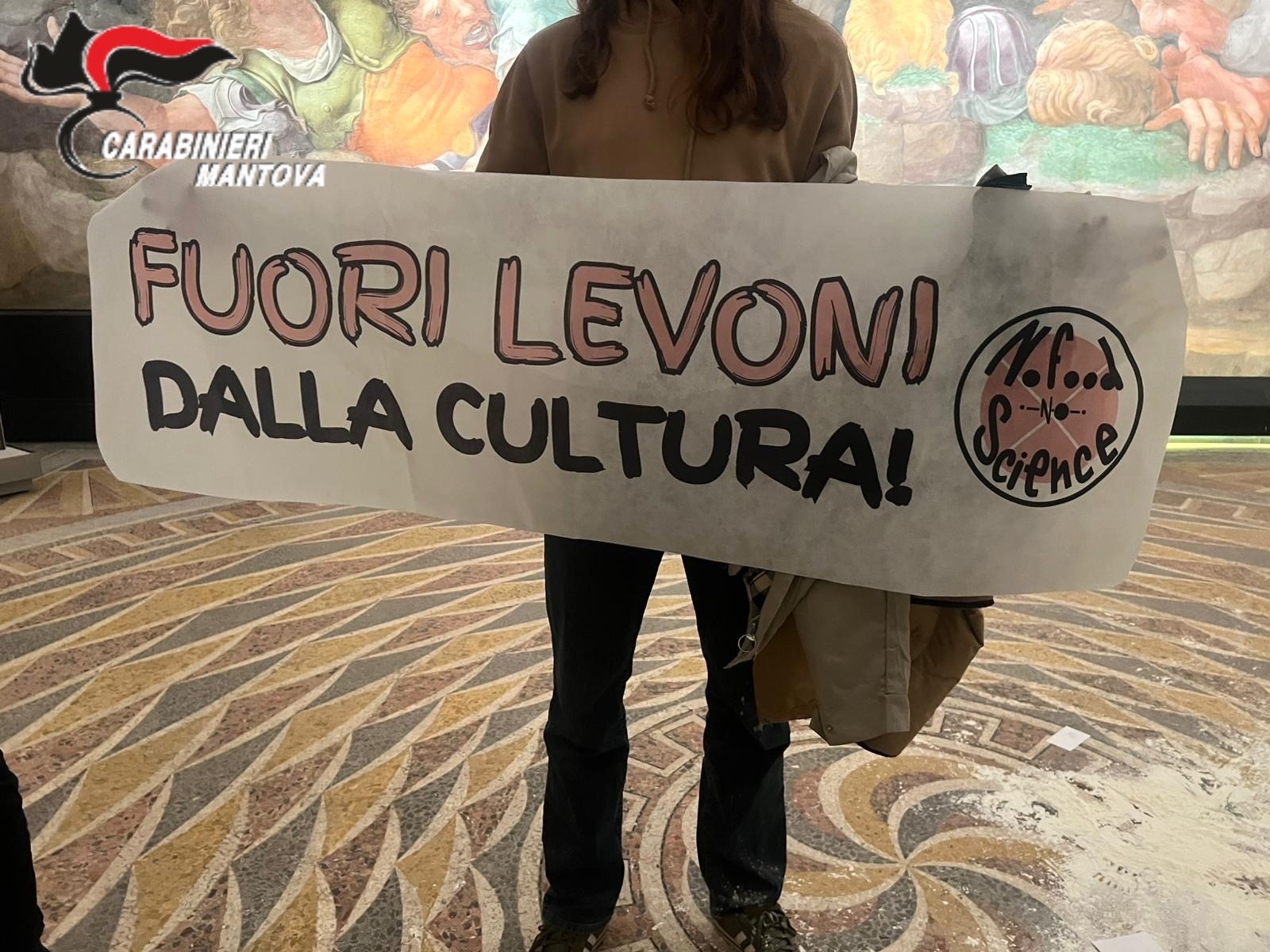 MANTOVA – Domenica 4 gennaio. È scoccato da poco mezzogiorno quando giunge una chiamata al 112 da parte della vigilanza di Palazzo Te di Mantova. Nella richiesta di intervento viene segnalata la presenza di tre soggetti, attivisti ambientalisti, che hanno cosparso di farina la “Sala dei Giganti”, gettando a terra delle fotocopie di banconote da 20 euro e srotolando degli striscioni.