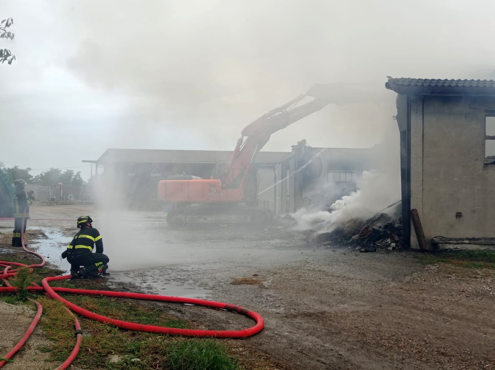Sono andate in fiamme circa 2mila rotoballe di fieno, per un danno economico complessivo di circa 100mila euro. Indagini in corso.