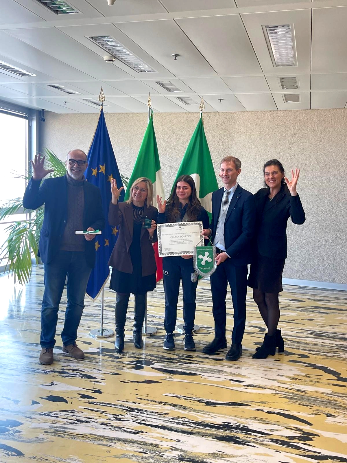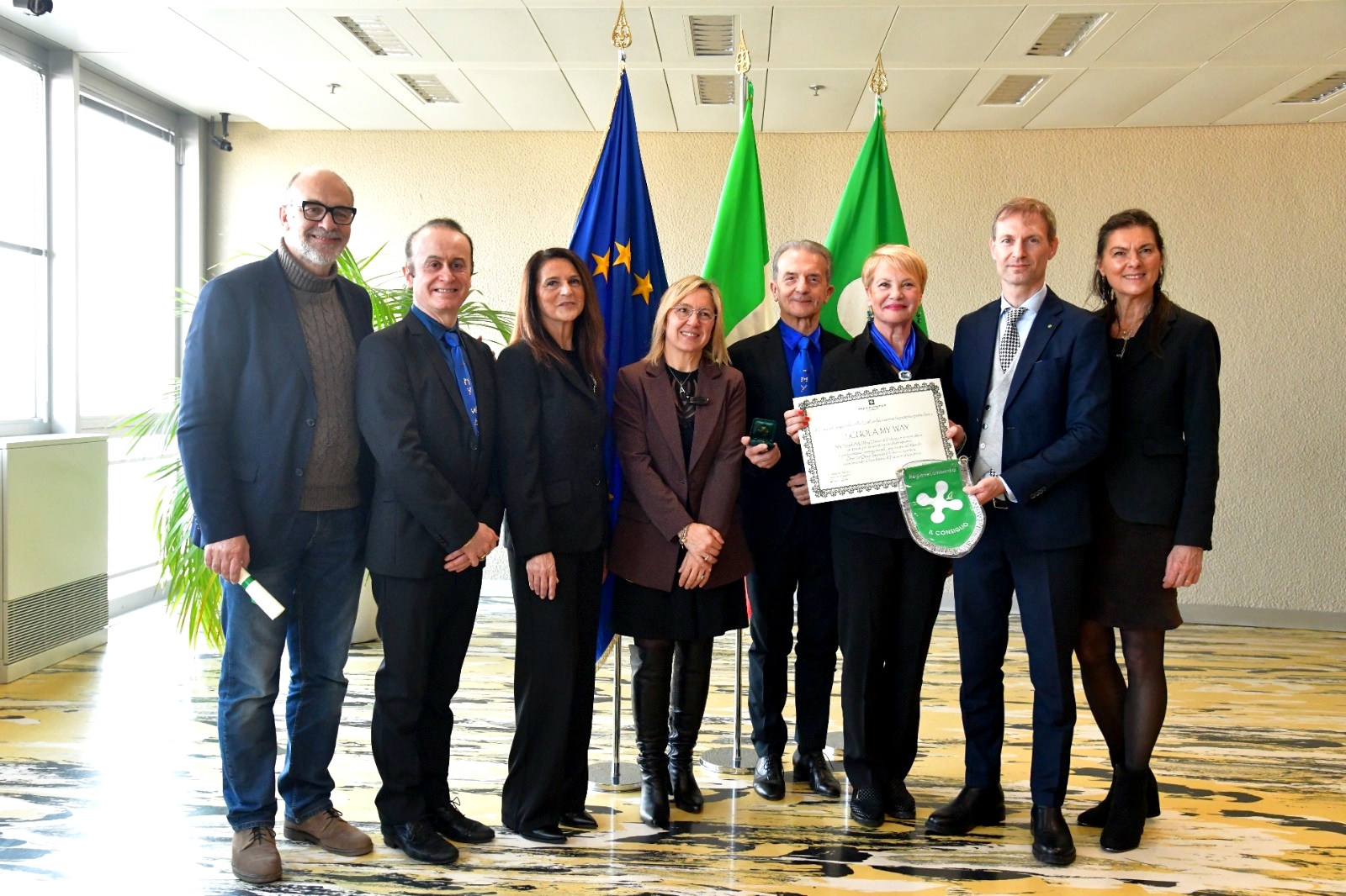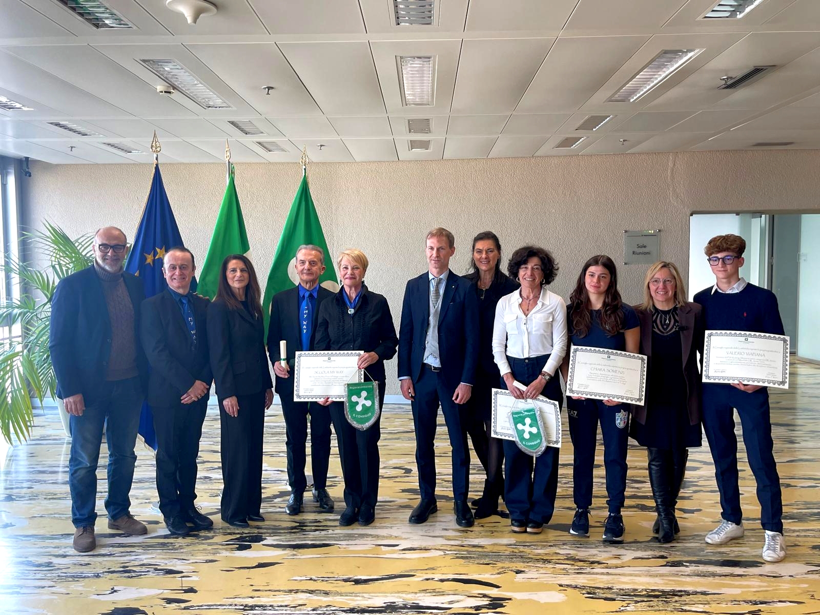Infine, riconoscimento alla Scuola My Way Danze di Piubega, guidata dai maestri Elia Bandera e Renata Rodella, insieme agli allievi Valter Rossi e Mara Lorenzon, campioni del mondo Over 70 Open Standard. «Una scuola i cui titolari sono già stati ospiti della nostra Istituzione regionale, premiati più volte per i loro traguardi e che oggi, come maestri, formano campioni e continuano a trasmettere passione e qualità».