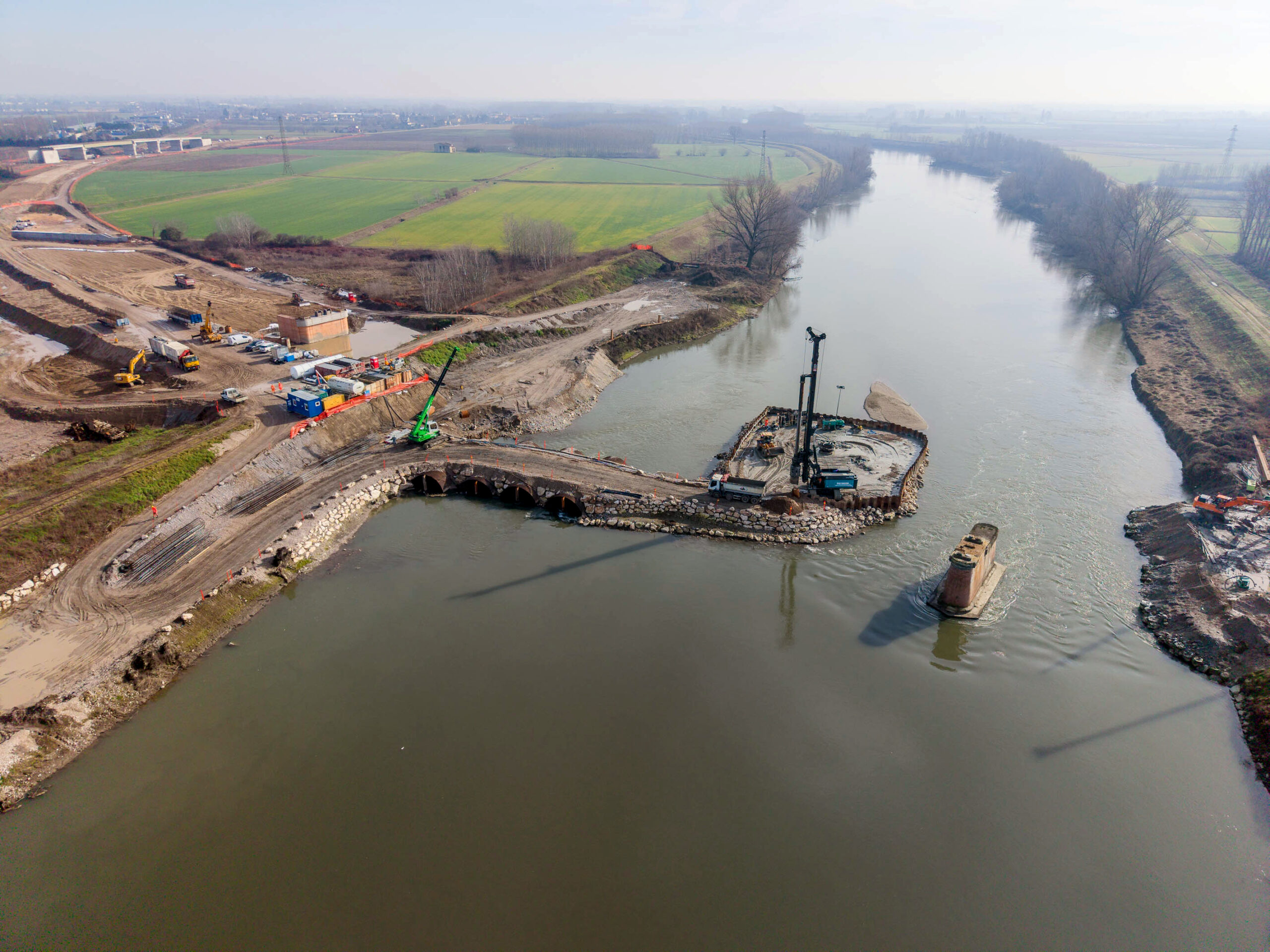 A Piadena si lavora alla posa di micropali per la pila 3 del futuro cavalcaferrovia; a Bozzolo sono in corso i lavori alla stazione, per la realizzazione del nuovo binario 3, mentre al viadotto sull’Oglio sono state completate le opere di sottofondazione della sponda sinistra, lato Marcaria. A breve (entro febbraio) termineranno anche le opere di sottofondazione della pila 1 lato Bozzolo. In corso anche la realizzazione della pila centrale in alveo.