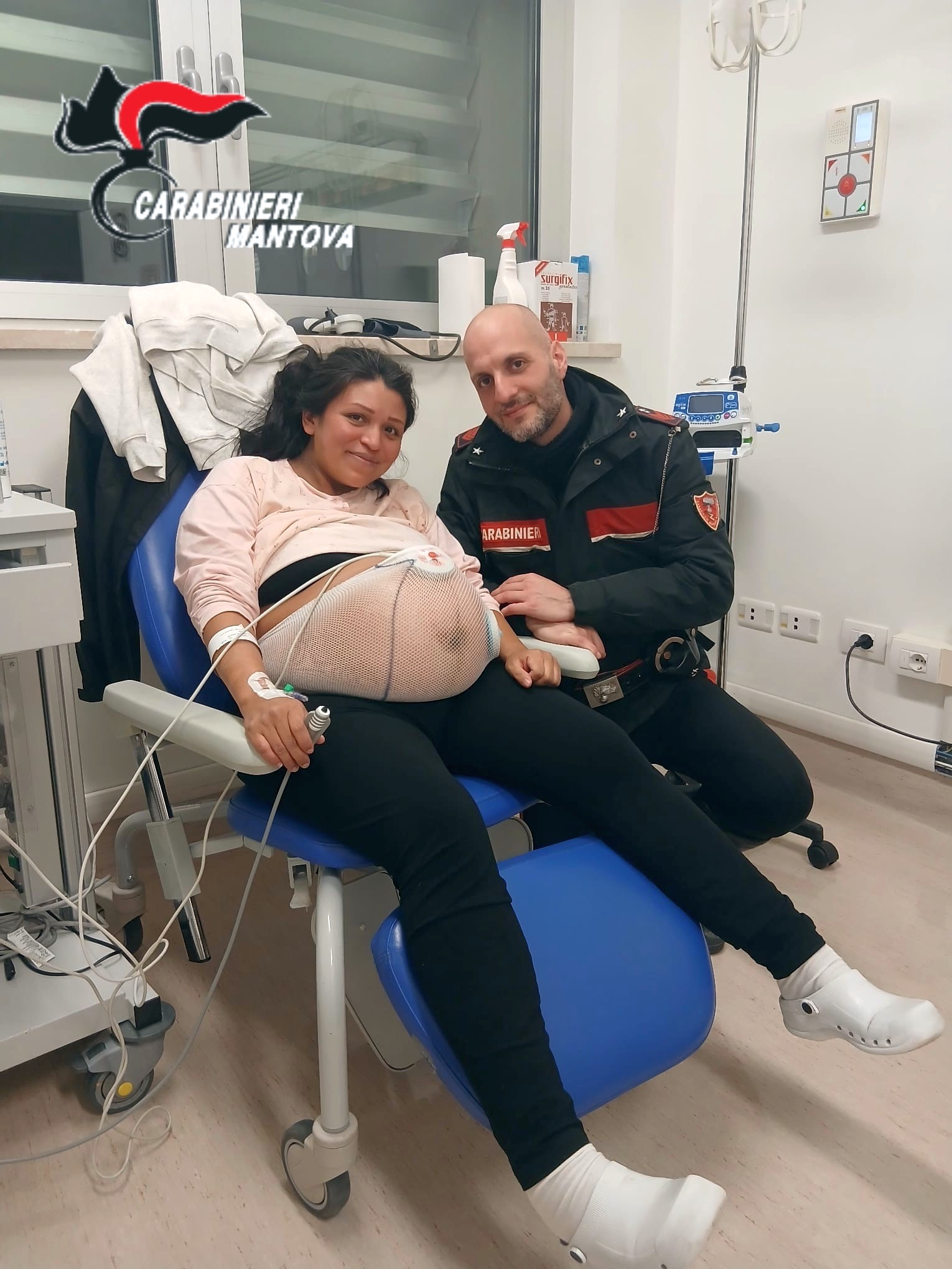 PEGOGNAGA / MOTTEGGIANA – Era a casa da sola. Era in stato interessante e, senza alcun preavviso, le si rompono le acque. La donna, una 39nne di Pegognaga, non ci pensa due volte e si mette alla guida della sua autovettura direzione ospedale civile di Mantova. Giunta a Motteggiana nota una pattuglia di Carabinieri che stavano effettuando dei controlli alla circolazione stradale. Si accosta e chiede aiuto.